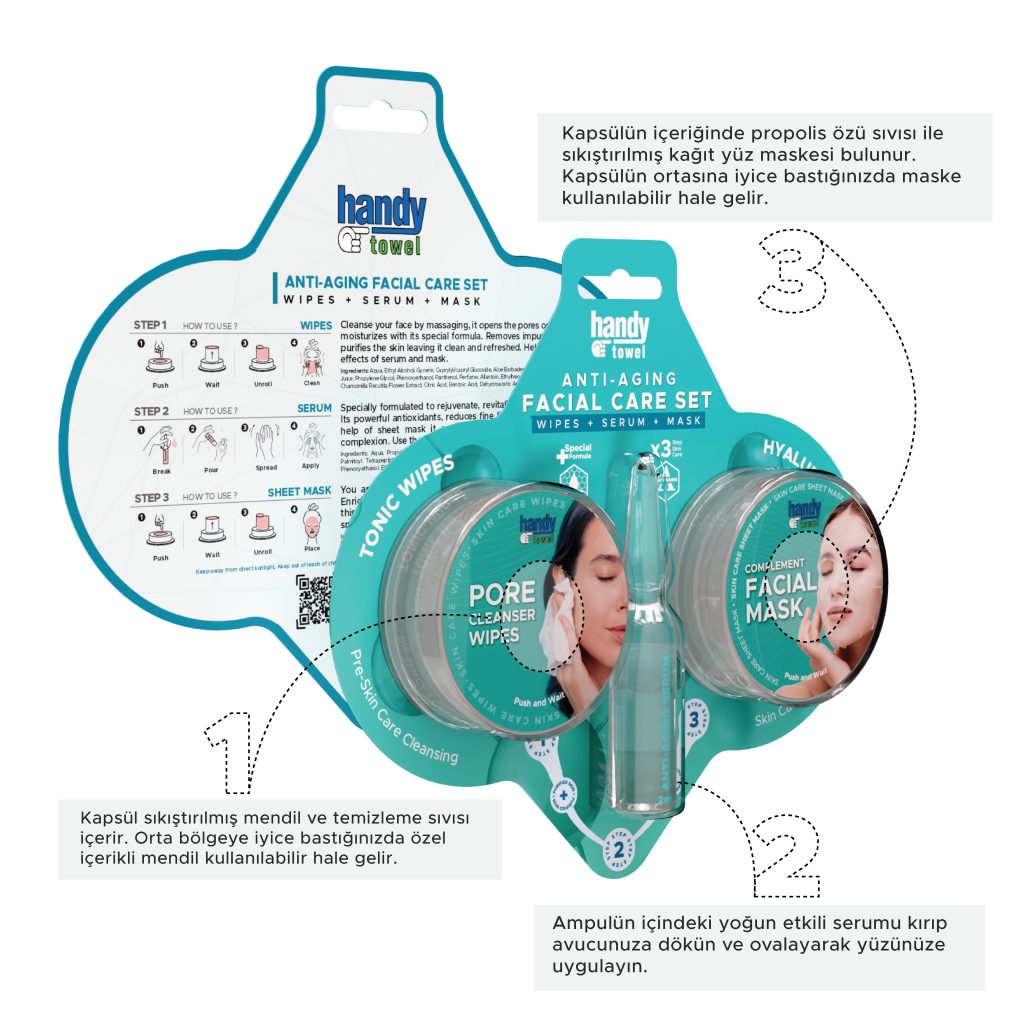 Cilt bakımı yapmak bazen karmaşık ve vakit alıcı görünebilir. Hangi ürünü hangi sırayla kullanacağınızı düşünmek yerine, profesyonelce hazırlanmış 3 Adımlı Yüz Bakım Setleri ile tanışın. Temizleme mendili, serum ve maskeyi tek bir pakette sunan bu setler, cildinize ihtiyacı olan özeni saniyeler içinde sunuyor.